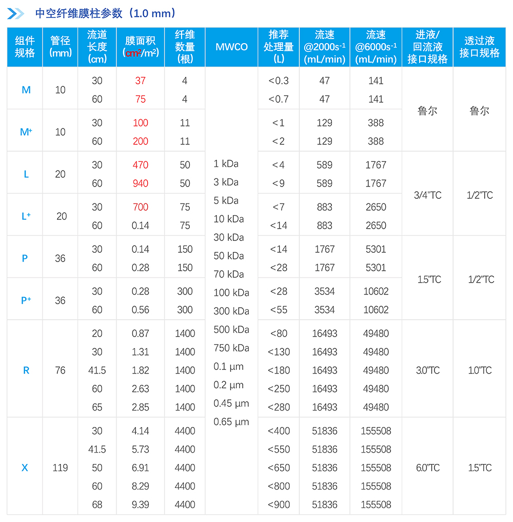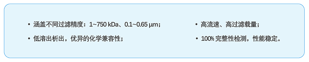 中空纖維膜絲采用改性聚醚砜(mPES)制備,抗污染性能強(qiáng);非對(duì)稱梯度孔結(jié)構(gòu)及均一孔徑保證高過濾精度的同時(shí)能獲取更高通量,提高產(chǎn)品收率。中空纖維膜柱采用符合醫(yī)療級(jí)別的外殼材料,生物相容性優(yōu)異,在滅菌環(huán)境中穩(wěn)定性優(yōu)良;選用的膠黏劑粘接強(qiáng)度高,耐熱性、耐化學(xué)性及生物相容性優(yōu)良;同時(shí)采用優(yōu)化的注膠工藝,注膠精度高,產(chǎn)品無缺陷。
